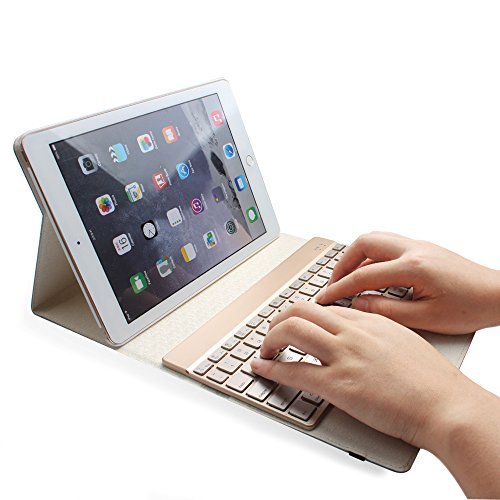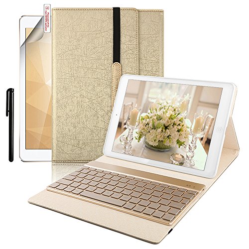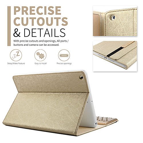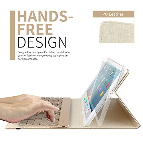 iPad 9.7 Keyboard Case, BoriYuan 7 Colors Backlit Wireless Bluetooth Keyboard with PU Leather Stand Smart Cover for Apple iPad 9.7 2017 with Magnetic Auto Sleep/ Wake Feature (Gold)