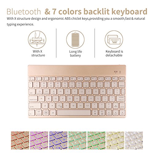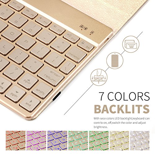 iPad 9.7 aluminum backlight keyboard: with adjustable 7colors backlight and 3levels brightness, you can type with this keyboard much easier in dark, and choose different color according your mood