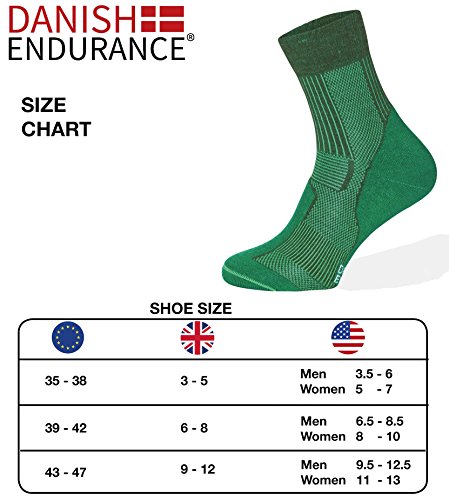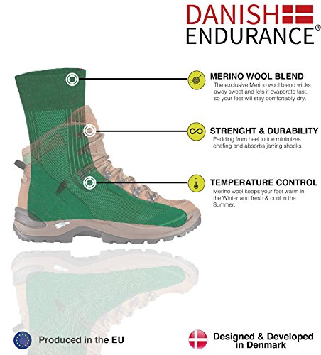 -. Binding : Apparel -. Brand : DANISH ENDURANCE -. Department : mens -. Feature : MERINO WOOL BLEND FOR TEMPERATURE CONTROL, STRENGHT & DURABILITY: Merino wool keeps your feet warm in the Winter and fresh and cool in the Summer. The Exclusive Merino Wool Blend wicks away sweat and lets it evaporate fast, so your feet will stay comfortably dry. The targeted ventilation mesh zones allow a constant airflow and through the padding from heel to toe the socks absorb jarring shocks and minimize chafing. Materials: 40% Merino Wool, 30% Acrylic, 28% Nylon, 2% Elastane. / UNIQUE DESIGN - RECOMMENDED BY FORMER NAVY SEAL: DANISH ENDURANCE Merino Wool Hiking and Trekking Socks are designed and developed in cooperation with Danish Adventurer and Former Navy SEAL Erik B. Jørgensen to ensure that you get the absolute best hiking sock on the market. The look is very fashionable, and the features are unmatched. Absolutely perfect if you are hiking, trekking, walking, backpacking, travelling during winter, sP.R.Ing, summer and fall. / ALWAYS DESIGNED AND MANUFACTURED IN EUROPE: We do not believe in cheap Chinese socks in poor quality created under poor working conditions. DANISH ENDURANCE Merino Wool Light Cushion Socks are always produced in Europe so the high-quality stitching guarantees amazing comfort and enables you to buy and wear socks with a good conscience. / THE BEST SOCKS with natural anti-bacterial properties for keeping your feet dry, warm and comfortable during hiking, trekking, long walks or if you just need a nice pair of everyday socks. The cushioning and Lin Toe seams prevent your feet from getting blisters, aching and pressures and the mesh zones optimize the ventilation. Spoil yourself, family or friends with these socks which are the perfect gift idea for old and young. / 100% RISK-FREE SATISFACTION GUARANTEE: With our Superior Customer Service and 100% money back guarantee, we do our outmost to deliver an Excellent Customer Service and we are always there to support you. If you have any issues do not hesitate to contact us. ORDER NOW and feel the difference right away! Add these great, stylish and fashionable Merino Wool Socks to your cart and become a DANISH ENDURANCE fan like thousands of people worldwide. -. IsAdultProduct : 0 -. ProductGroup : Apparel -. ProductTypeName : SOCKSHOSIERY -. Title : Merino Wool Light 1/4 Crew Socks for Hiking, Trekking, Performance & Outdoor, Men & Women (3 or 1 Pairs)