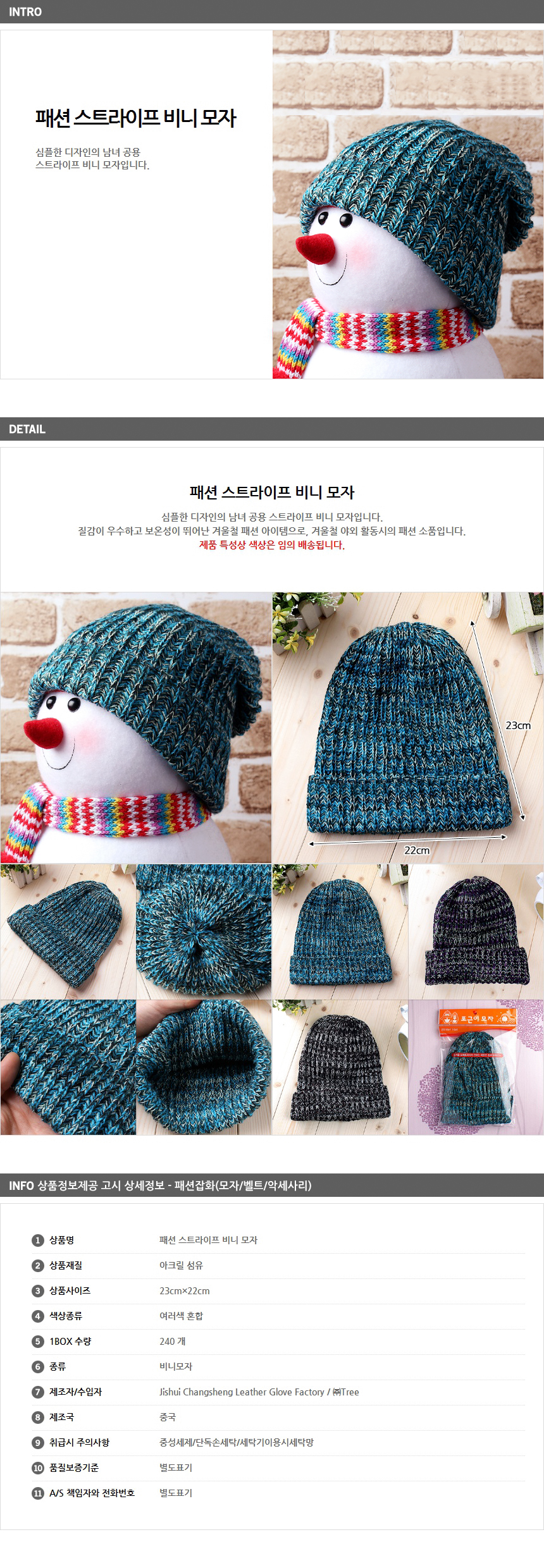 <상품명 : ZP8 패션 스트라이프 비니 모자>