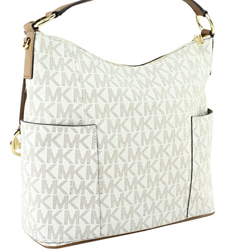 Michael Kors Anita Signature Medium Convertible Handbag Vanilla/Acorn 35H7GA8L7B-149