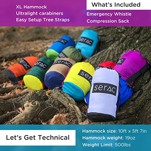 [Premium Double Hammock & Strap Bundle] Serac Sequoia XL Portable Double Camping Hammock with Ripstop Nylon and Quick-Hang Suspension System