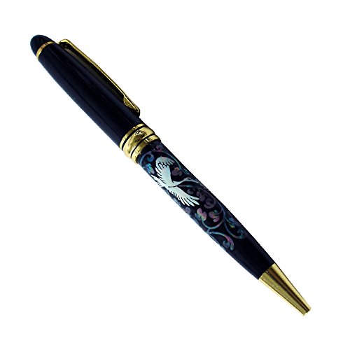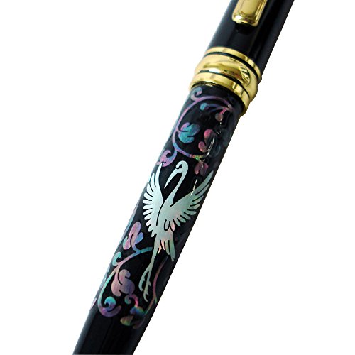 Mother of Pearl Crane Bird Design Handmade Retractable Executive Gift Deluxe Rollerball Medium Point German Black Ink Ballpoint Pen