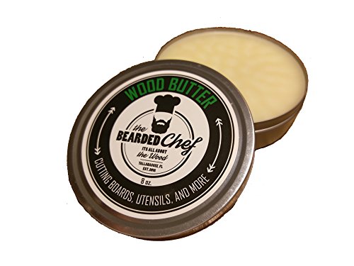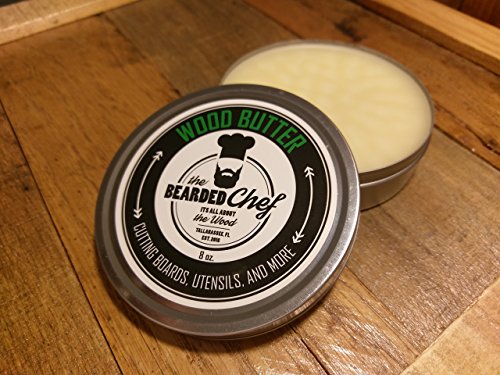 -. Brand : It's all about the wood -. EAN : 0860488000400 -. Feature : 100% Food Grade Mineral Oil and Beeswax Safe for Food Contact / Kills and Prevents Bacteria / Retains Beauty and Hydration in Wood / Protects from Drying and Cracking / Made in U.S.A. - Stringent Quality Standards -. Label : The Bearded Chef -. Manufacturer : The Bearded Chef -. Model : BC-WB -. PackageQuantity : 1 -. ProductGroup : Kitchen -. ProductTypeName : KITCHEN -. Publisher : The Bearded Chef -. Size : 8 Ounces -. Studio : The Bearded Chef -. Title : Butcher Block & Cutting Board Wood Butter - 8 ounces - Made in the USA - Veteran Owned Business - It's all about the Wood! -. UPC : 860488000400