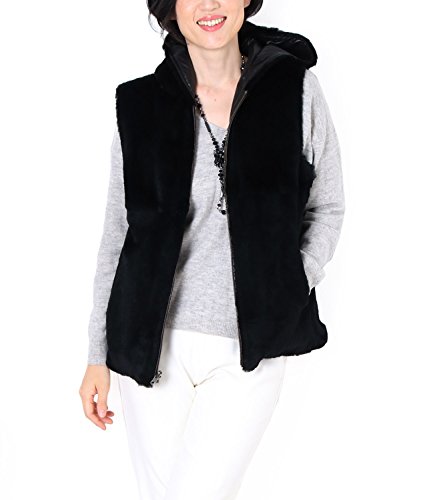 -. Title : ラビット ベスト ファー フード付き リバーシブル レディース