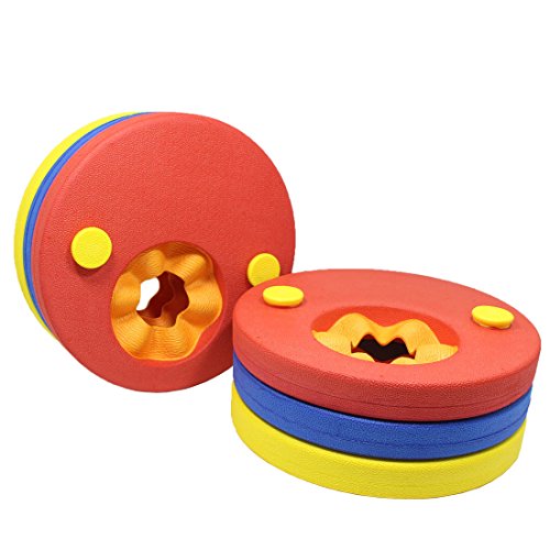 -. Brand : ToySharing -. Feature : Product Included: 6 x Split Arm Float Discs / Made of soft durable waterproof EVA foam, will not chip or absorb water. / Start with 3 discs on each arm. 3 color of discs (Red, Blue, Yellow) / 3 adjustable split arm float discs. The dots on the disc that slot into the holes connecting them together to increase buoyancy, and remote one disc at a time as swimming beginner progresses / Bear the body weight up to 77 pounds. Suitable for kids aged 3-6 years and whose arm max diameter is under 3.3 Inches -. IsAutographed : 0 -. IsMemorabilia : 0 -. Label : ToySharing -. Manufacturer : ToySharing -. MPN : TOYS00133 -. PartNumber : TOYS00133 -. ProductGroup : Sports -. ProductTypeName : OUTDOOR_RECREATION_PRODUCT -. Publisher : ToySharing -. Studio : ToySharing -. Title : ToySharing Arm Float Discs Kids Swim Arm Bands Split Swimming Armbands for Pool (Set of 6 Pieces)