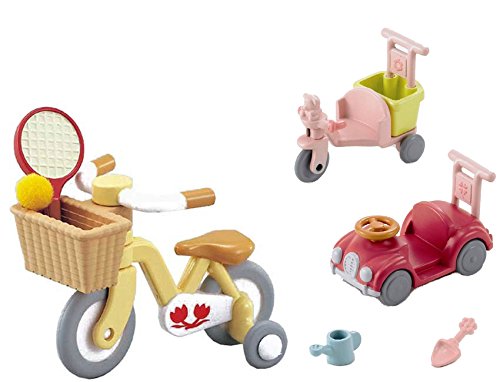 -. Binding : Toy -. Brand : Calico Critters -. EAN : 0705332275767 -. Feature : Car and tricycle set includes a car, trike, sprinkling can and shovel / Size of box: 93 x 62 x 41 mm (3.66 x 2.44 x 1.6 inches) / Bike set includes: bike with training wheels and basket, racket and ball. / Size of box - 93 x 65 x 41 mm (3.6 x 2.56 x 1.6 inches) / Great for girls and collectors as well as stimulating imaginative role-play in children -. IsAdultProduct : 0 -. Label : Epoch Co. -. Manufacturer : Epoch Co. -. ProductGroup : Toy -. ProductTypeName : TOYS_AND_GAMES -. Publisher : Epoch Co. -. Studio : Epoch Co. -. Title : Two Play Sets Sold Together - Car and Trike Set and Bike Sets (Japan Import) -. UPC : 705332275767