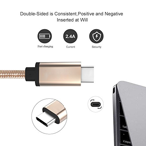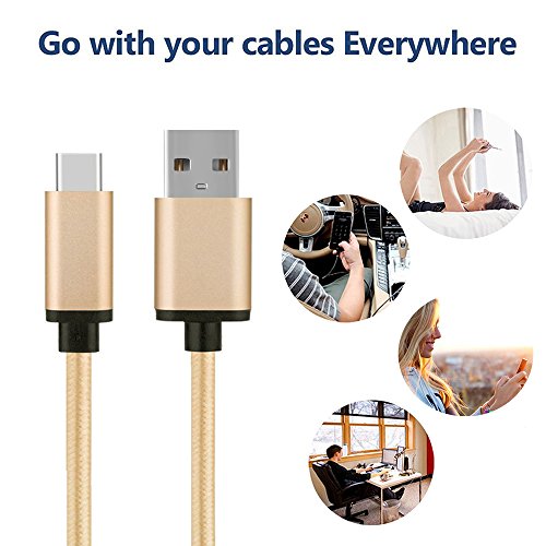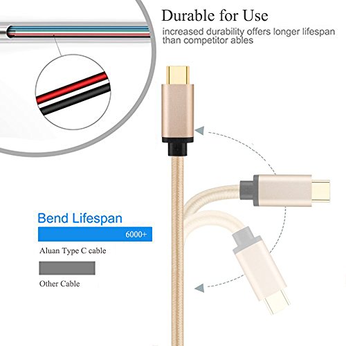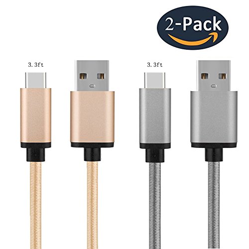 Type C cable Aluan 2 Pack 3.3ft Nylon braided USB C high speed charging cable for Moto Z Play, LG G5 G6, Galaxy S8,Google Pixel XL, Nexus 6P, Macbook 12 inch, and Other Type C Devices (Golden&Gray)