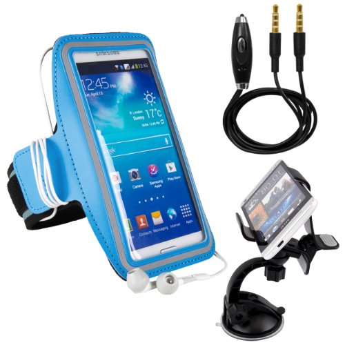 Apple iPhone 7 / iPhone SE / iPhone 6s / iPhone 6 Blue Armband, Outdoor Jogging Excercise SportsBand Hiking Strap [Key Holder] + AUX Cable + Car Mount
