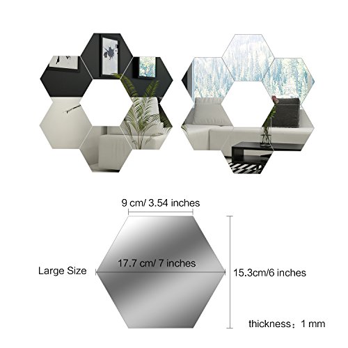 - Mirror stickers measurement: the mirror is in hexagon shape, 9 cm/ 3.54 inches in side length, 17.7 cm/ 7 inches in diameter and 1 mm in thickness