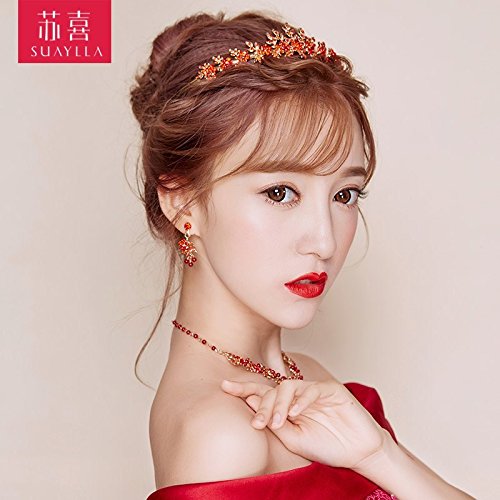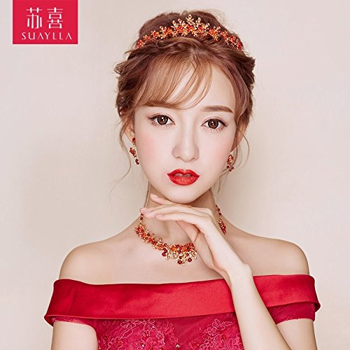 Product Description Generic The bride headdress Parure Korean red crown tiara necklace earring hair accessories wedding dress toast cloth accessories 0