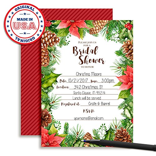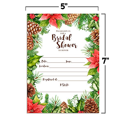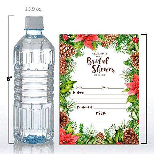 - Stunning Floral Design: Designed by a talented mom, these beautiful cards feature gorgeous poinsettias, watercolor greenery, and pinecones for a gorgeous Holiday Bridal shower invitation. The bride to be will love the elegance. ©Amanda Creation. Original design by Amanda Creation™