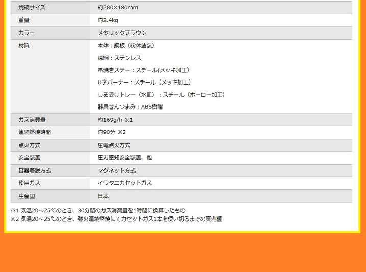 ●※2 気温20~25℃のとき、強火連続燃焼にてカセットガス1本を使い切るまでの実測値