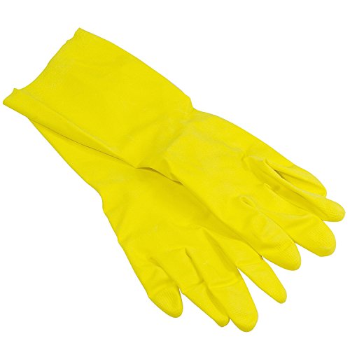 Quickie Lined Large Latex Gloves, One Pair, Yellow