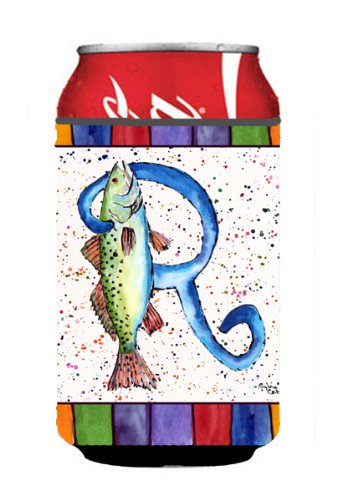 Letter R with Trout Fish Can or Bottle Beverage Insulator Hugger 8441