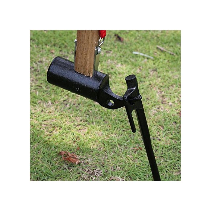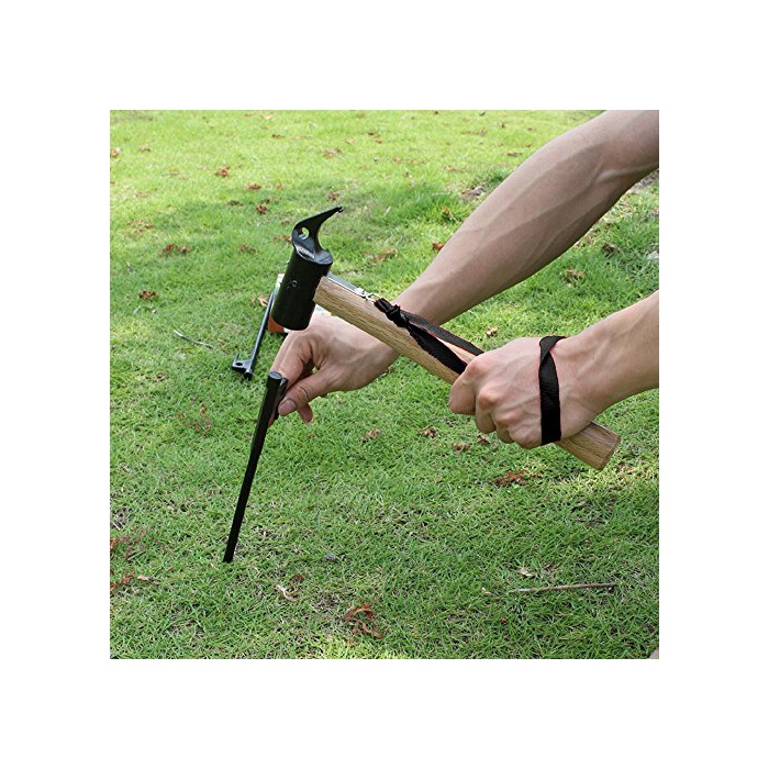 해머의 헤드 뒷부분의 홀은 페그(말뚝)의 훅 모양 헤드에 거는 것으로 간단에 딱딱한 지면에서 끌어내는 것 를 할 수 있습니다.해머의 헤드 뒷부분의 돌발 부분은 원형의 헤드의 페그(말뚝)를 제칠 때 이용으로 옵니다.
