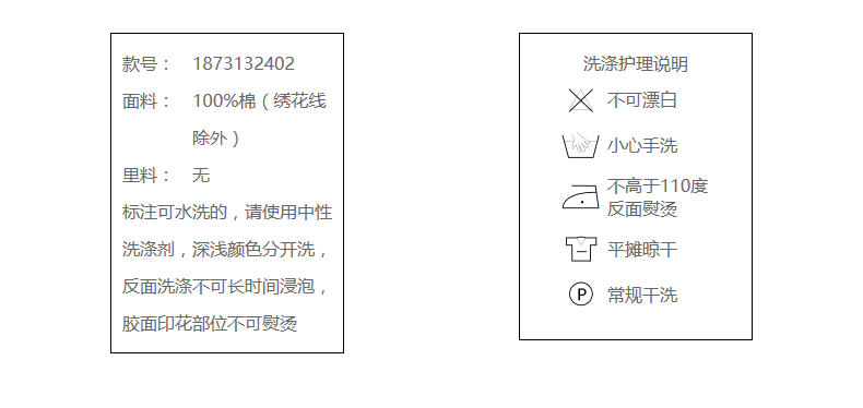 100%棉(绣花线除外)
