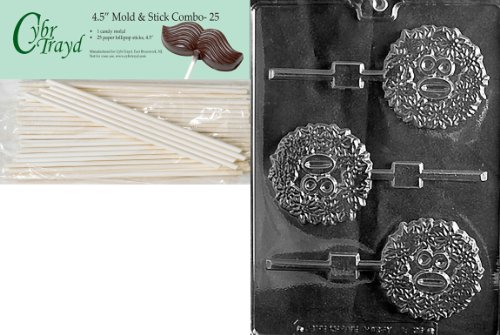 Cybrtrayd 45St25-L036 No.80 Lolly Letters and Numbers Chocolate Candy Mold with 25 Cybrtrayd 4.5-Inch Lollipop Sticks