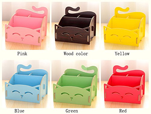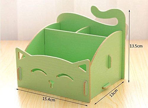 Cute Cat Woodden Storage Box Office Desktop Cosmetic Organizer Multifunction Makeup Cosmetic Storage Box (Green)