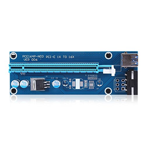 Main Features: Using 60cm USB 3.0 cable as extender cable, premium quality and super speed Using high quality CAPXON 270U 16V solid capacitors, making graphics power supply more stable and secure With SATA 15-pin power cable to make it more powerful and reduce the burden of the motherboard Using 15U gold-plated of connector making its signal and connection more stable and long life Compatible with PCI-E 1X 4X 8X 16X slot of the motherboard Using the edge clip to fix the graphics card, easy to replace the graphics card NO driver needed, just install the graphics driver Dedicated for BTC, LTC, ETH, etc. Type: PCI - E 1X to 16X Extender Riser Card Package weight: 0.115 kg Product size: 13.00 x 4.50 x 1.20 cm / 5.12 x 1.77 x 0.47 inches Package size: 16.00 x 14.00 x 4.00 cm / 6.3 x 5.51 x 1.57 inches Packing List: 1 x PCI - E 16X Extender Riser Card, 1 x USB Cable, 1 x PCI-E 1X Adapter, 1 x 15-pin Power Cable 0