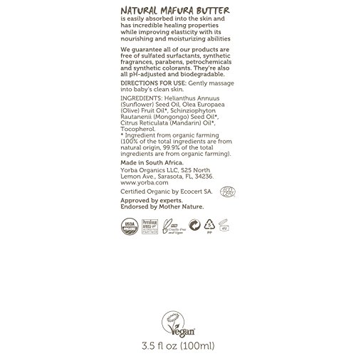 Yorba Organics Baby Oil with Wild-Harvested Mafura, 3.5 Fluid Ounce
