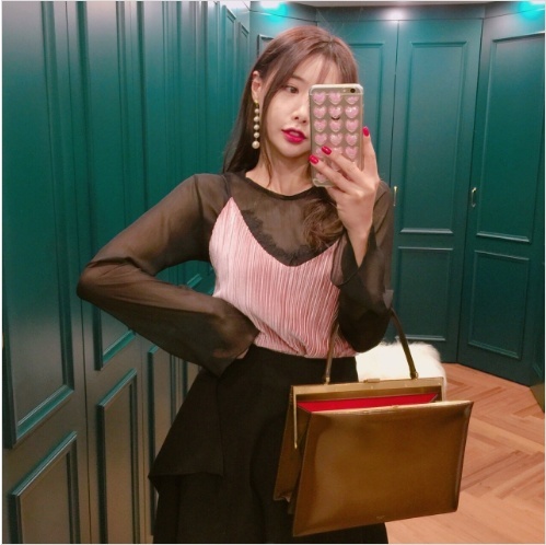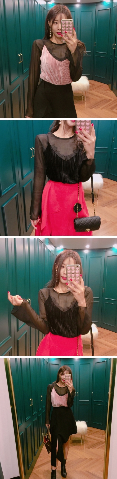 Women`s Black SeeTrough Blouse Velvet Sleeveless Set