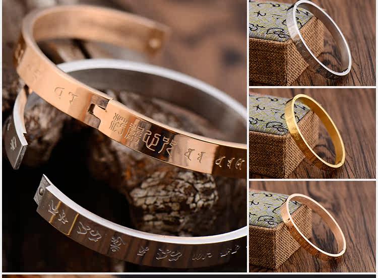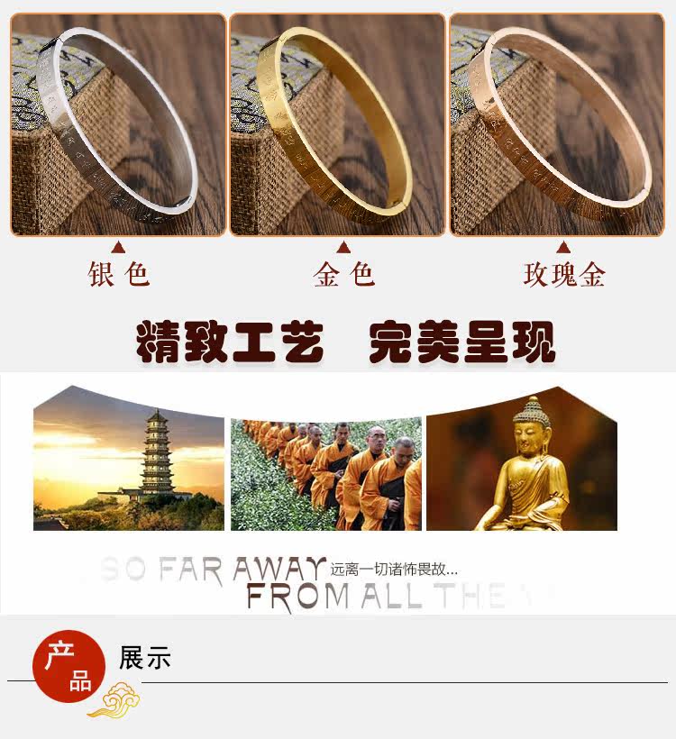 开光楞严咒手镯女男手环佛教六字真言文殊心经转运经文手链饰品