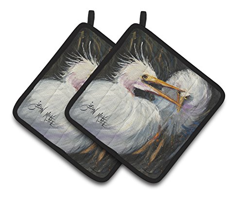 Caroline's Treasures White Egret Pair of Pot Holders JMK1213PTHD, 7.5HX7.5W, Multicolor