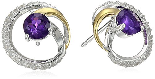 18K Yellow Gold-Plated Sterling Silver Two-Tone Gemstone and Created White Sapphire Swirl Stud Earrings