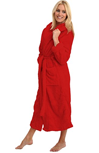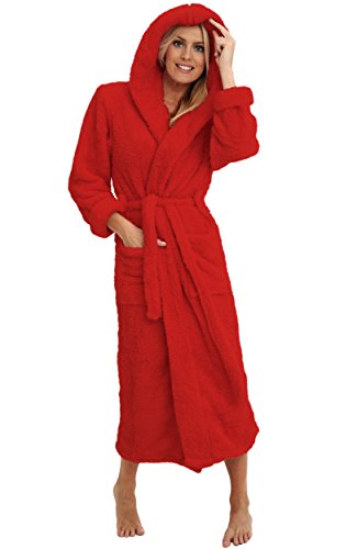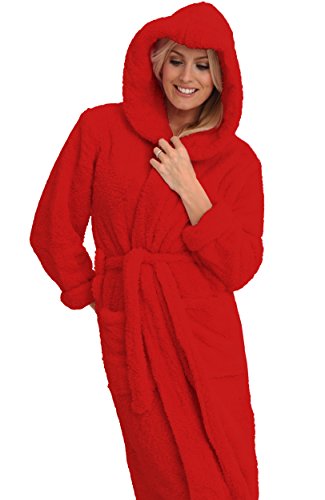 Del Rossa Women's Fleece Robe, Long Plush Hooded Bathrobe, Large XL Red (A0304REDXL)