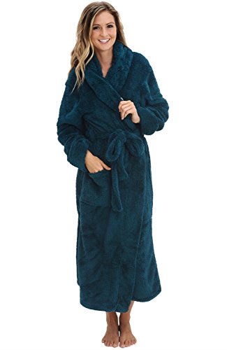 Del Rossa Women's Fleece Robe, Long Plush Hooded Bathrobe, 1X 2X Teal (A0304TEA2X)