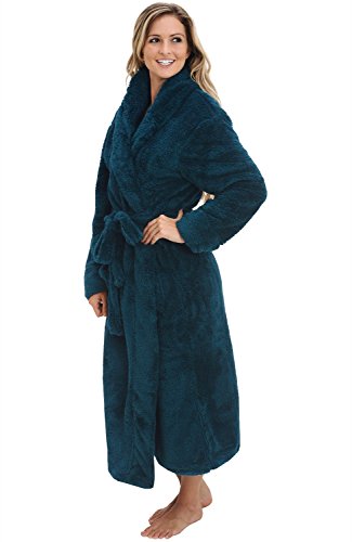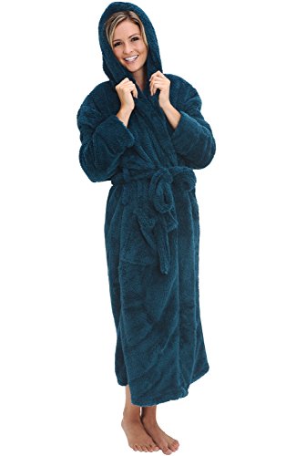 Del Rossa Women's Fleece Robe, Long Plush Hooded Bathrobe, 3X 4X Teal (A0304TEA4X)
