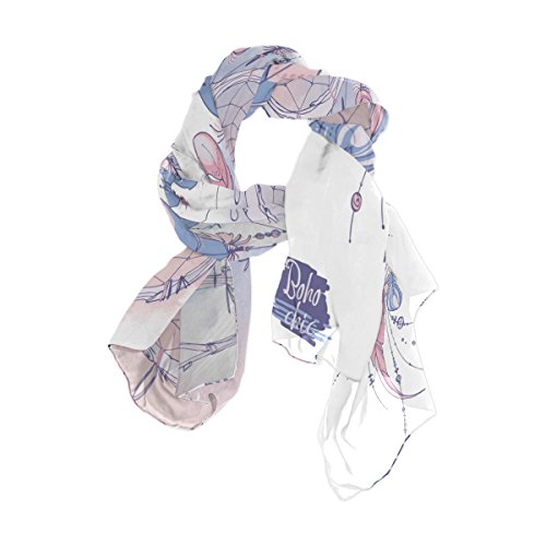 (ALAZA)/Accessories/Cold Weather Accessories/DIRECT FROM USA/ALAZA Watercolor Dreamcatcher Feather Chiffon Silk Long Scarf Shawl Wrap