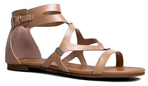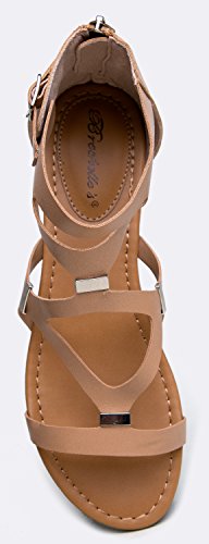 Breckelle's Women's Ruby-51 Cutout Gladiator Sandal Natural 7.5 B(M) US