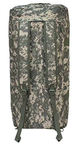 -. Feature : Field Tested to carry over 100 Lbs, 600 denier polyester construction with vinyl backing / Hideaway backpack straps and zippered front pocket / Two end handles / Main compartment with "U" shaped zippered opening / Hook & Loop strip for P.R.Ide patches or name tape