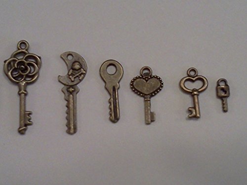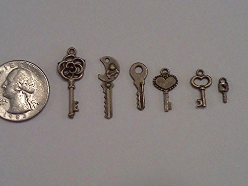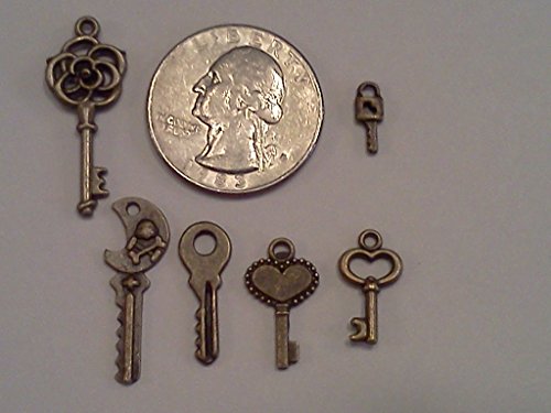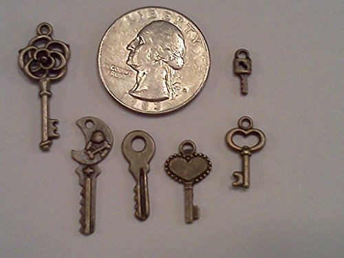 60pc Tiny Keys, Antique Bronze, 1/3 to 1 Inch Long