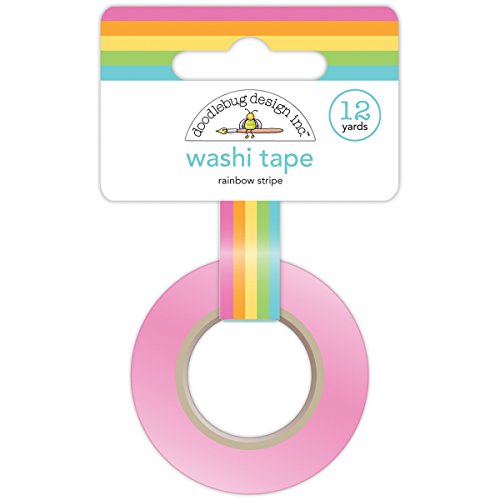 Doodlebug Washi Tape, 15mm by 12-Yard, Rainbow Stripe