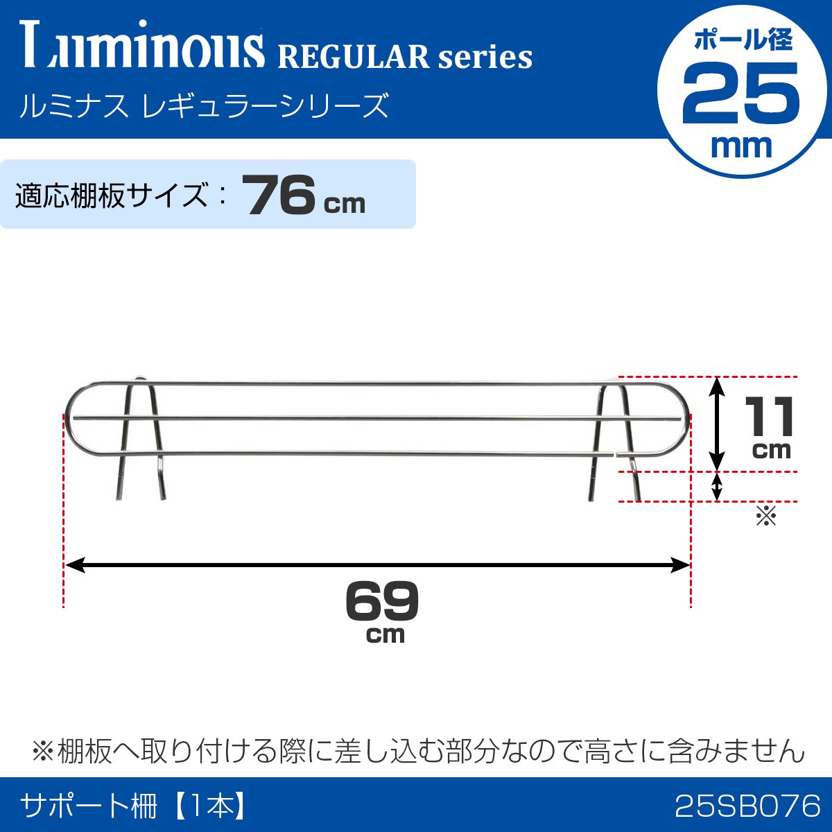 / ■ Specification ■ · Size (approx): Width 69 × Height 11cm · Corresponding Pole Diameter: 25mm · Corresponding Shelf Size: Width 76cm · Material: Steel (Chrome Plating) ※ Height Size is put on the side of the shelf board