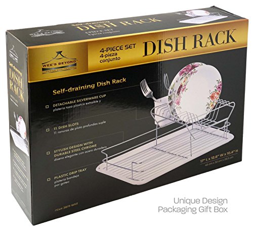 Wee's Beyond 3819-WHT Self-Draining Dish Rack 4 Piece Set, White