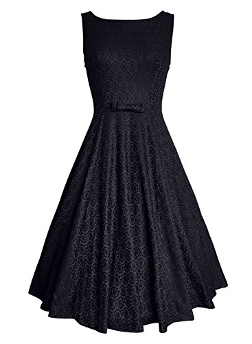 Anni Coco® Women's 1950s Audrey Hepburn Lace Crochet Vintage Evening Dress Black Large