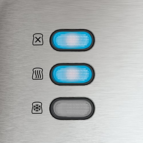 -. Feature : Blau beleuchtete Bedienungstasten zur leichten Erkennung der Funktionen / Brotanhebung zur Entnahme kleinerer Brotscheiben ohne verbrannte Finger / Zwei Schlitze für 4 Toasts / Variable Toasterschlitze für dicke und dünne Brotscheiben / Variable Bräunungsteuerung