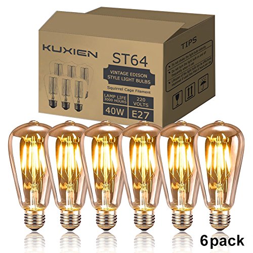 Antique Bulbs, Edison Bulbs,Vintage Edison Bulbs KUXIEN 6 Pack E27 Antique Light Bulbs Vintage Squirrel Cage Filament Incandescent Light Bulb for Home Light Fixtures