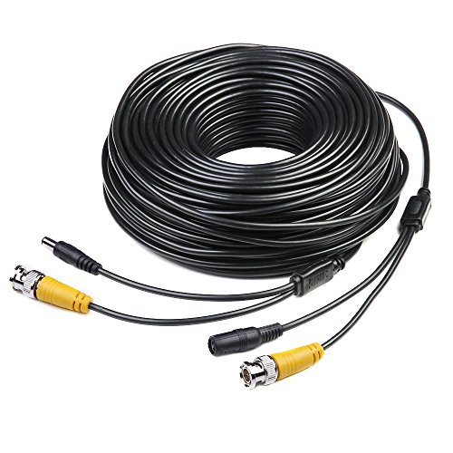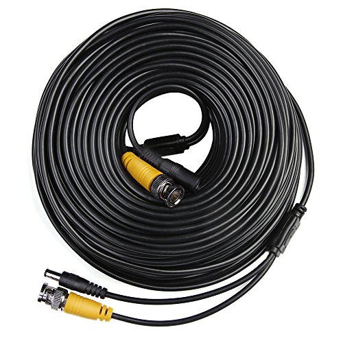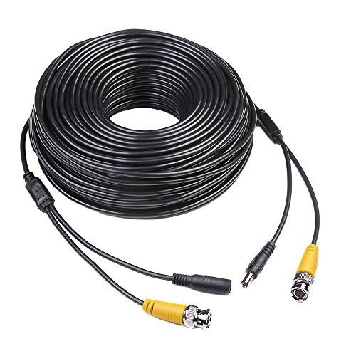 Masione 2-in-1 150ft Video Power Extension Cable Wire for CCTV DVR CCD Security Cameras Surveillance System with BNC to RCA Adaptor Black
