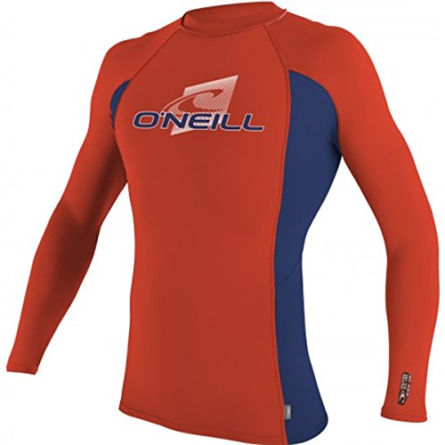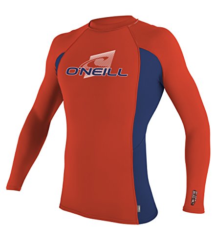 O'Neill Wetsuits UV Sun Protection Youth Skins Long Sleeve Crew Sun Shirt Rash Guard, Neon Red/...