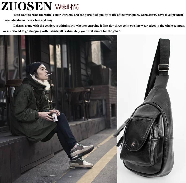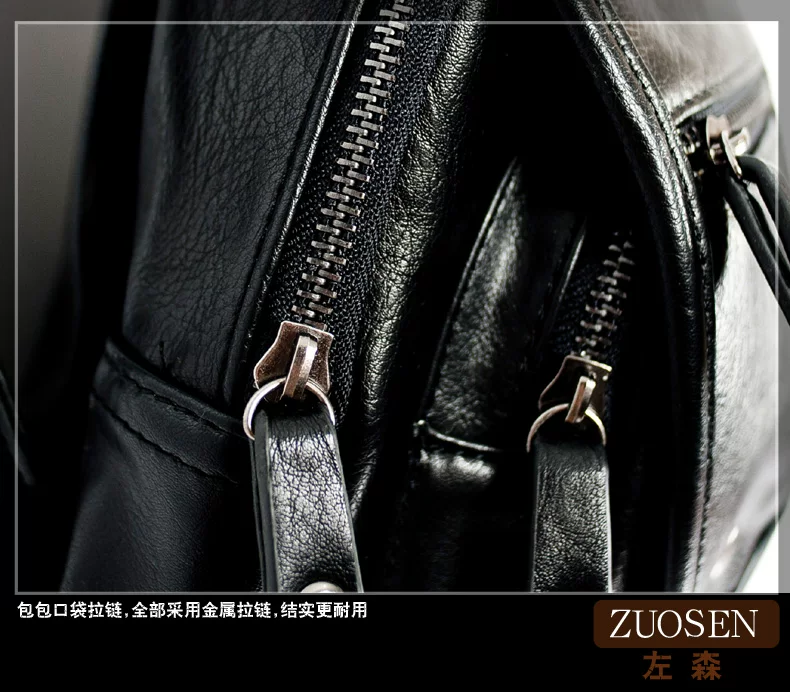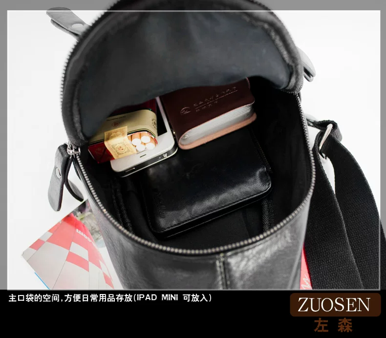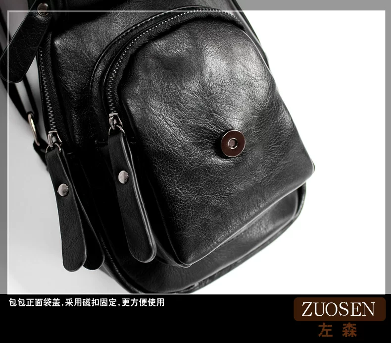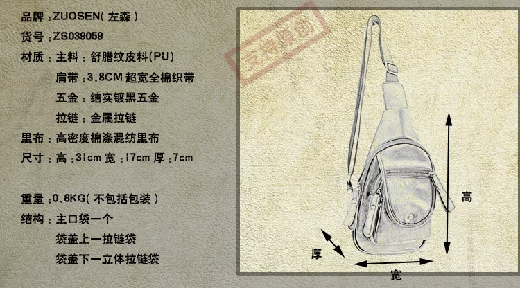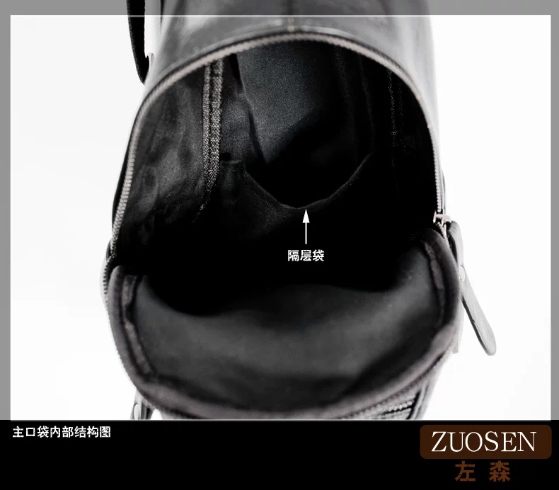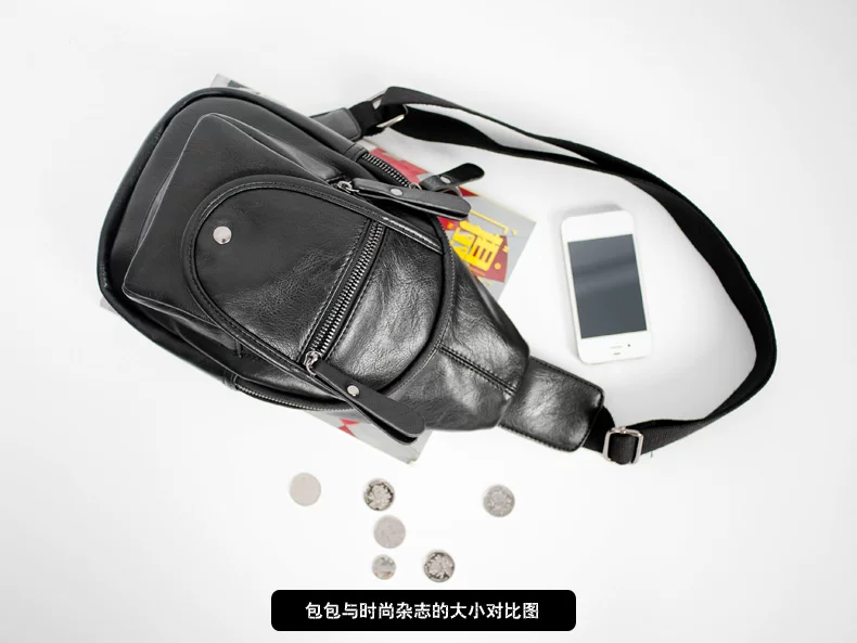 正面袋盖上拉链袋可以放零钱,袋盖下面拉链袋可以放手机,香烟等