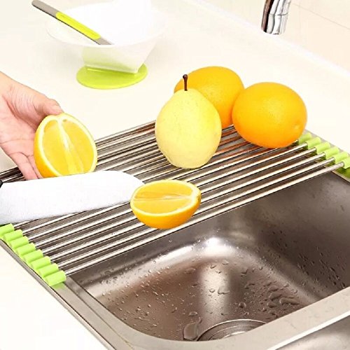 Space saving - This sink dish rack is foldable and easily rolls up when not in use.