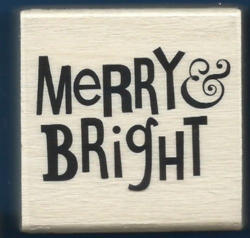 -. Title : Craftsmart Christmas Wood Stamp "Marry & Bright" 2"x 2"