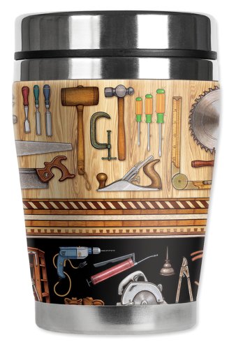 Mugzie Hand Tools "Mini" Travel Mug with Insulated Wetsuit Cover, 12 oz, Black