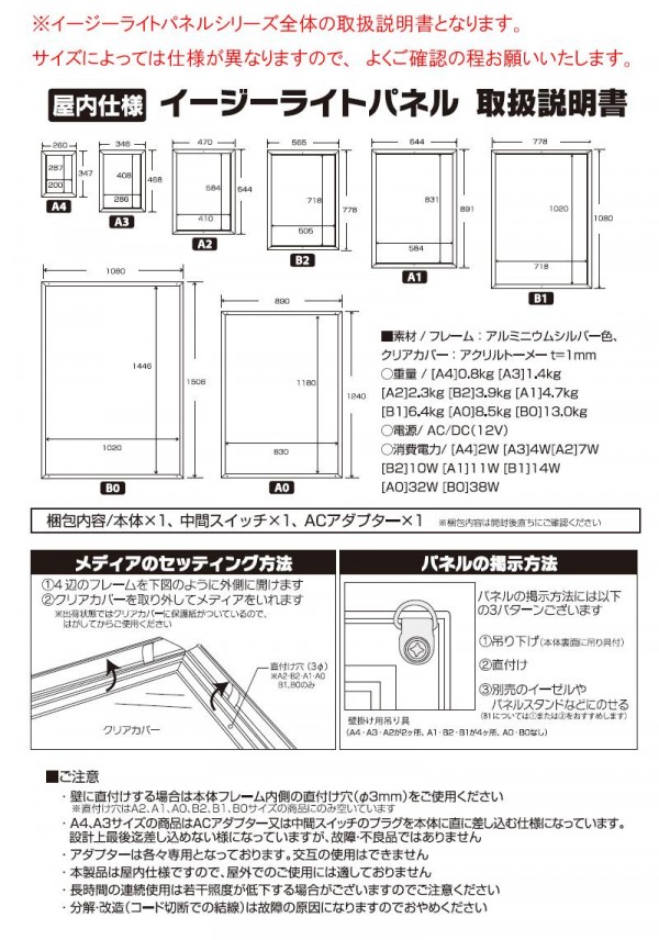 LEDパネルの新定番、エッジライト方式で、便利な4辺前開きのイージーライトパネルです。LEDなので、明るく、長持ちで影ムラなし!!厚さ20mmと薄型・軽量で省スペース!! |