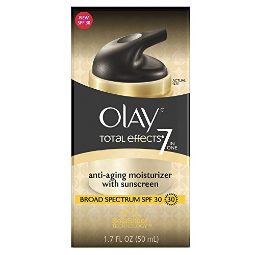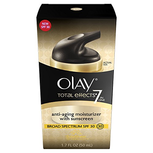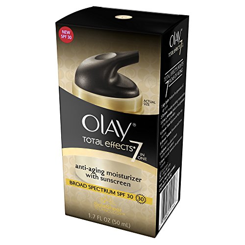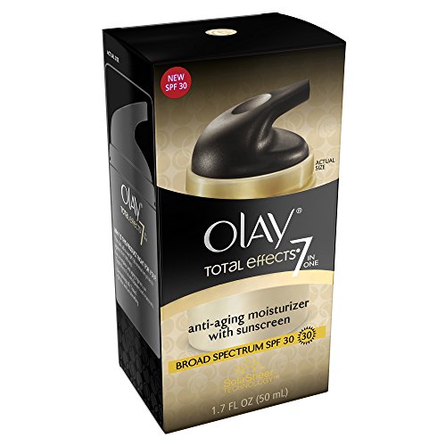 -. Binding : Misc. -. Brand : Olay -. EAN : 0885195944526 -. Feature : Daily, all-in-one facial moisturizer with SPF for younger-looking skin / 7 Benefits: Reduces the appearance of age spots, Provides nourishing moisturization, Reduces the appearance of fine lines and wrinkles, Balances and helps even out tone, Smoothes and evens skin texture, Gives skin an instant healthy-looking radiance, Instantly minimizes the appearance of pores / Broad Spectrum SPF 30 sunscreen helps protect against the sun's harmful rays / Proven VitaNiacin Complex, with Vitamins C & E, exfoliates to enhance skin's natural self-renewal process for healthier looking skin / Dermatologically tested, Oil-free and fast-absorbing -. IsAdultProduct : 0 -. Label : P&G -. LegalDisclaimer : Actual product packaging and materials may contain more and/or different information than that shown on our Web site. We recommend that you do not solely rely on the information presented and that you always read labels, warnings, and directions before using or consuming a product. Content on this site is for reference purposes and is not intended to substitute for advice given by a physician, pharmacist, or other licensed health-care professional. You should not use this information as self-diagnosis or for treating a health problem or disease. Contact your health-care provider immediately if you suspect that you have a medical problem. Information and statements regarding dietary supplements have not been evaluated by the Food and Drug Administration and are not intended to diagnose, treat, cure, or prevent any disease or health condition. ABC Wholesale assumes no liability for inaccuracies or misstatements about products. -. Manufacturer : P&G -. Model : NA -. MPN : 00075609191466 -. NumberOfItems : 1 -. PackageQuantity : 1 -. PartNumber : 00075609191466 -. ProductGroup : Beauty -. ProductTypeName : BEAUTY -. PublicationDate : 2013-12-14 -. Publisher : P&G -. ReleaseDate : 2014-01-20 -. Studio : P&G -. Title : Olay Total Effects 7 in one, Anti-Aging Moisturizer With SPF 30, 1.7 Fluid Ounce -. UPC : 885586989242